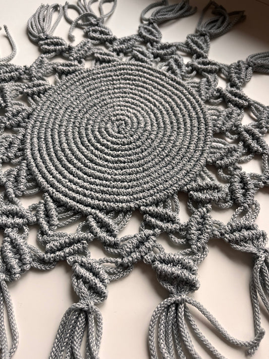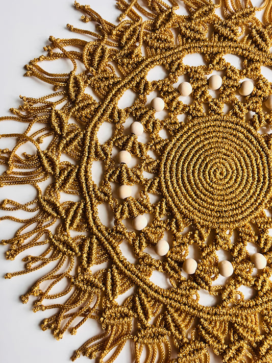 🧡 Rankų darbo makramė stalo padėkliukas „Auksinis Ratas“