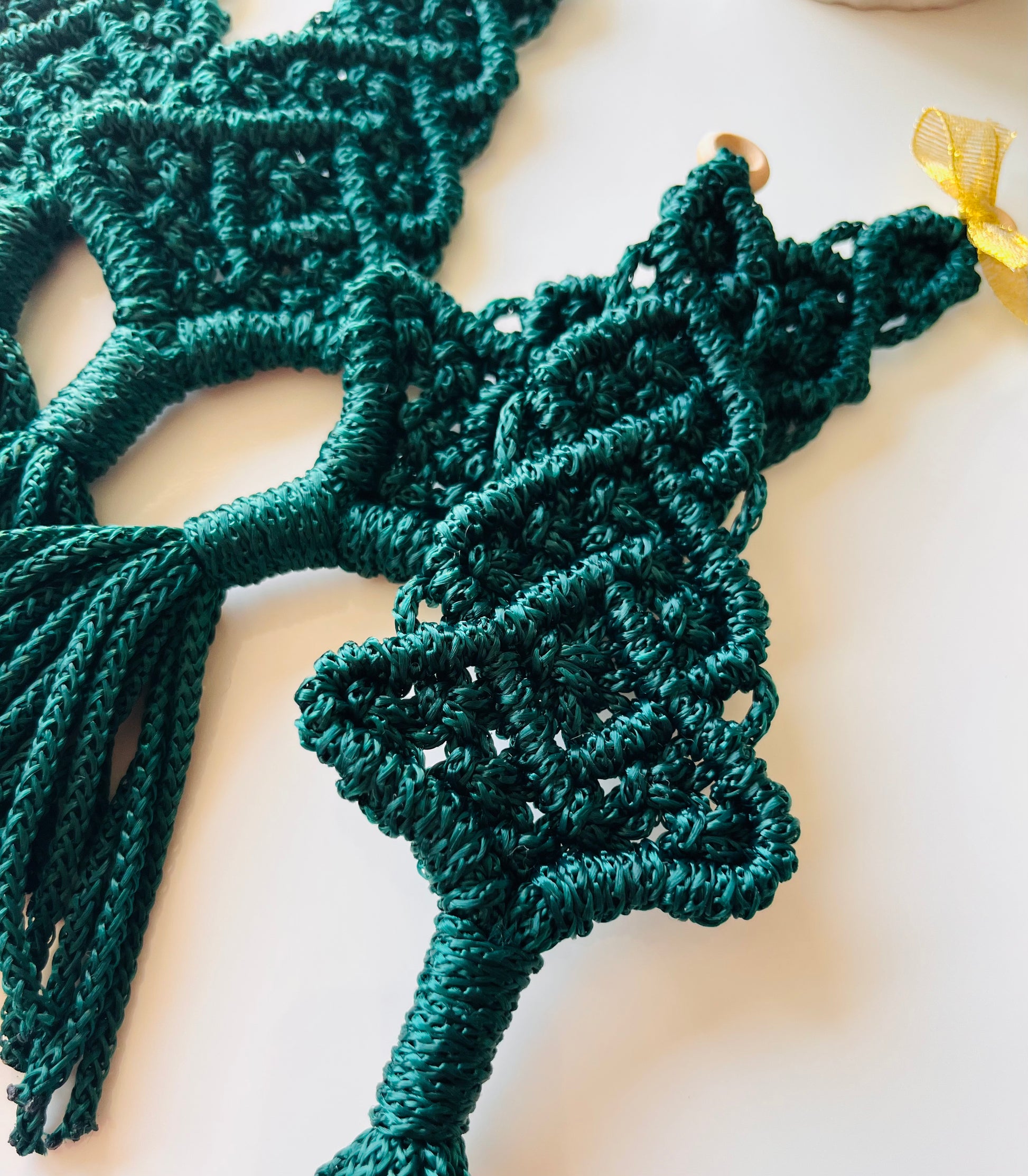 Tai ne tik dekoracija – tai mažas šiltas akcentas, lydintis tave kasdienėse kelionėse. Pintas iš žalios spalvos virvelės, jis sujungia natūralumą, rafinuotumą ir subtilią Kalėdų dvasią.