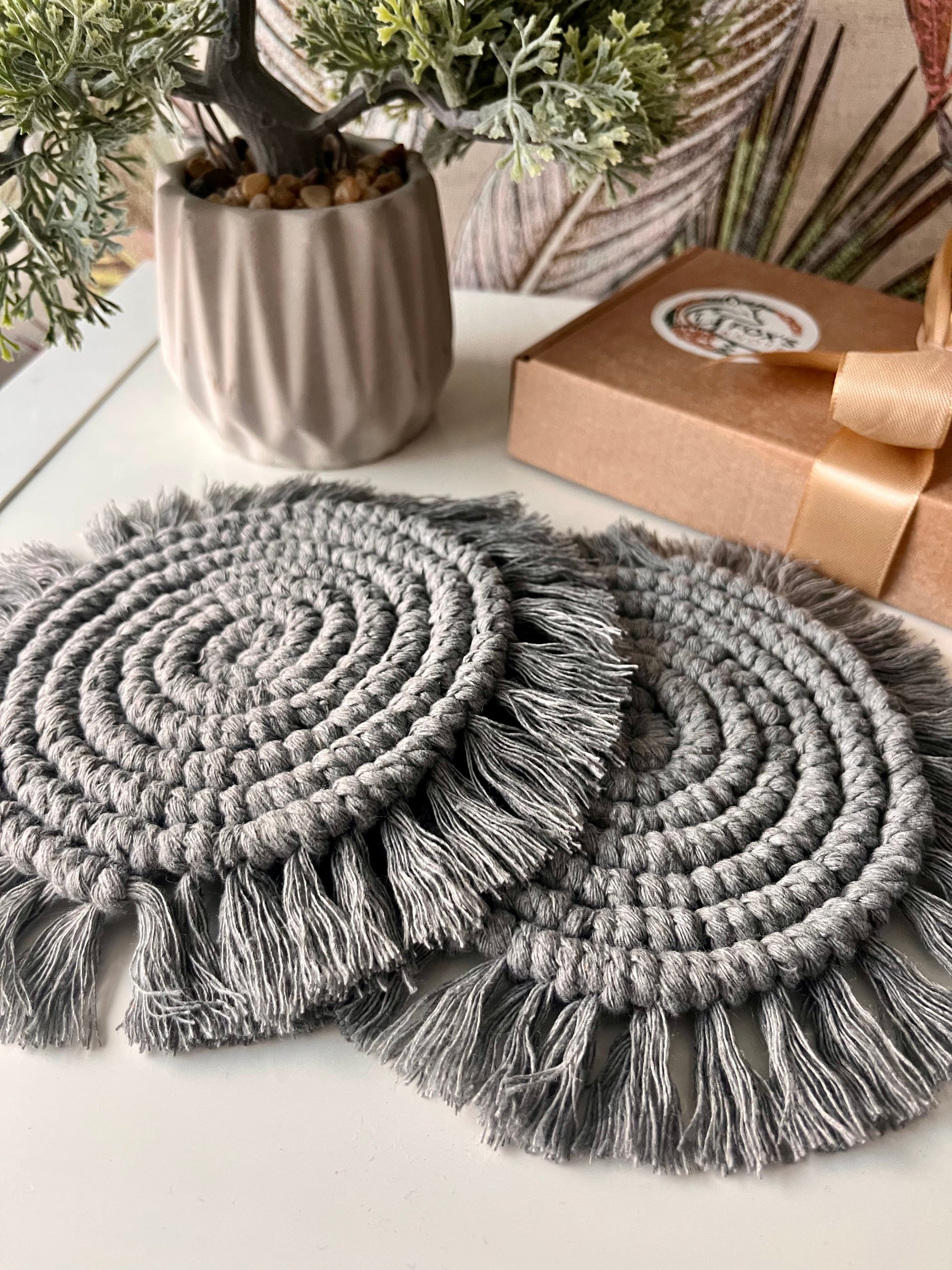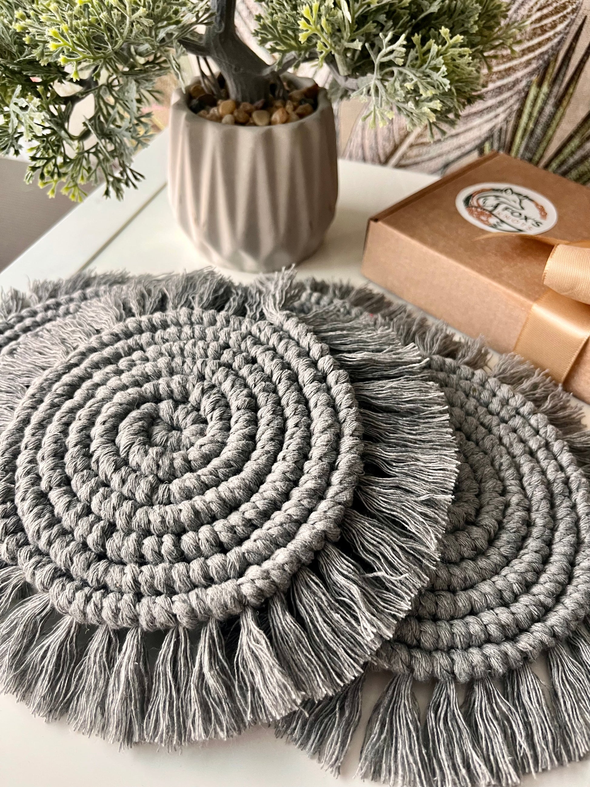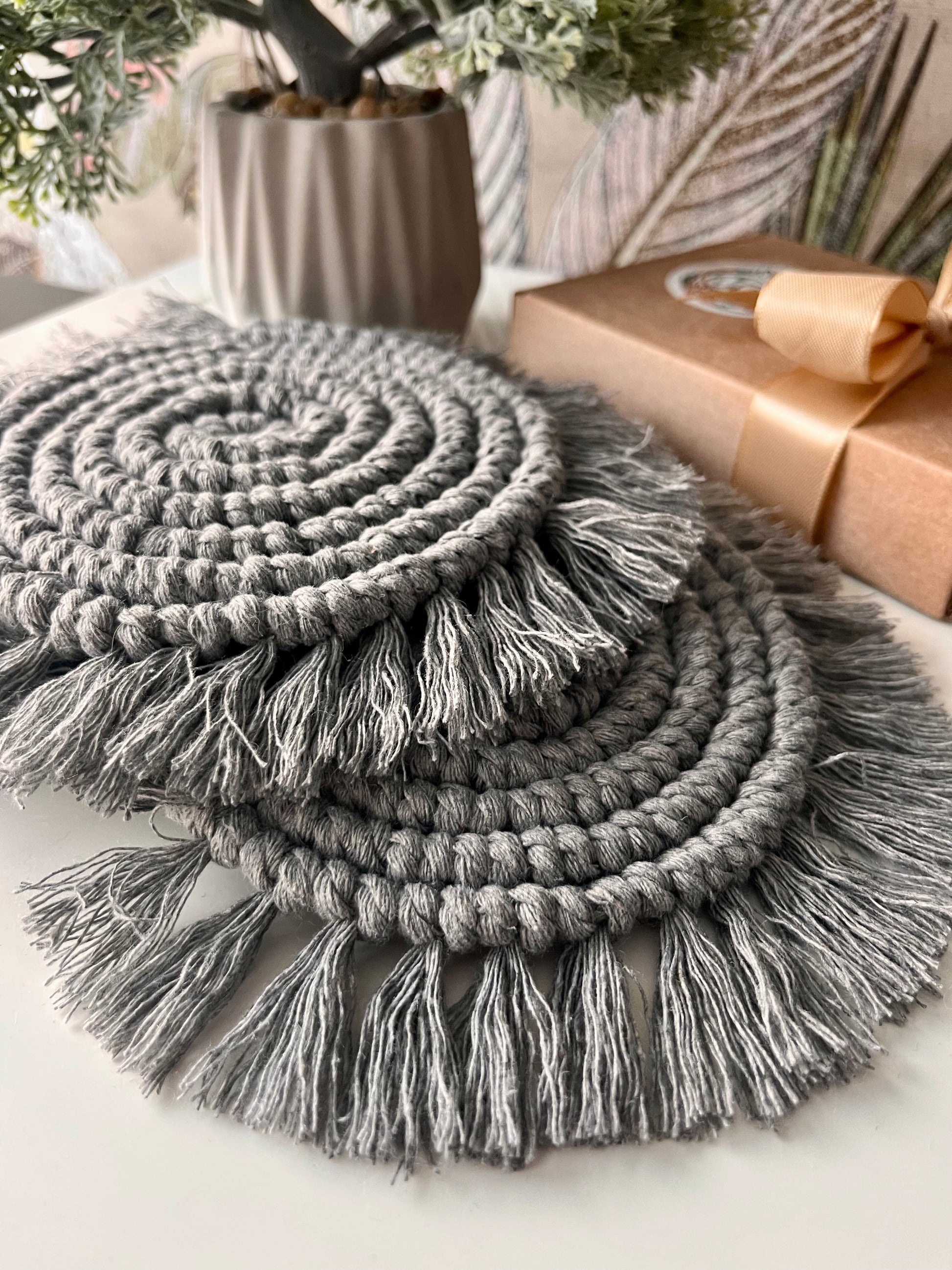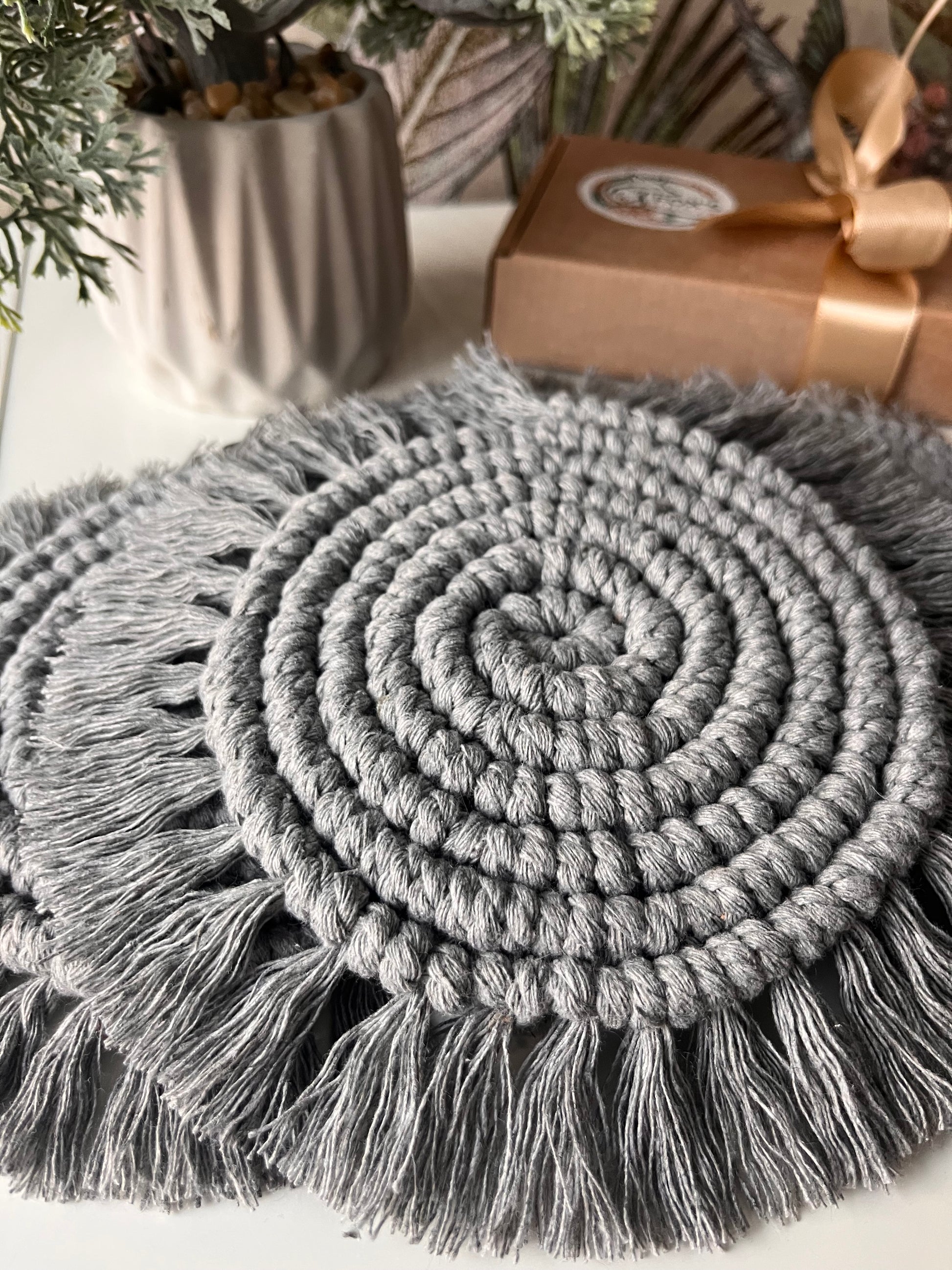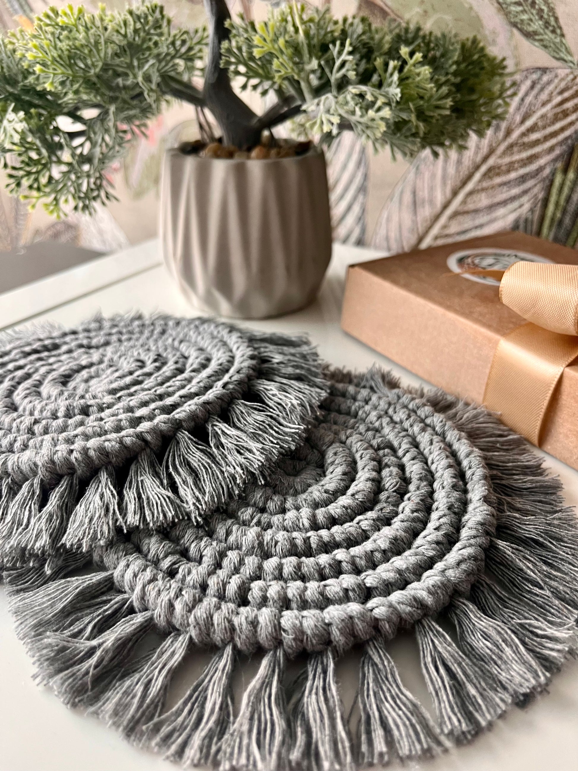 Rankų darbo makramė padėkliukai – ryškus ir jaukus akcentas jūsų namams.