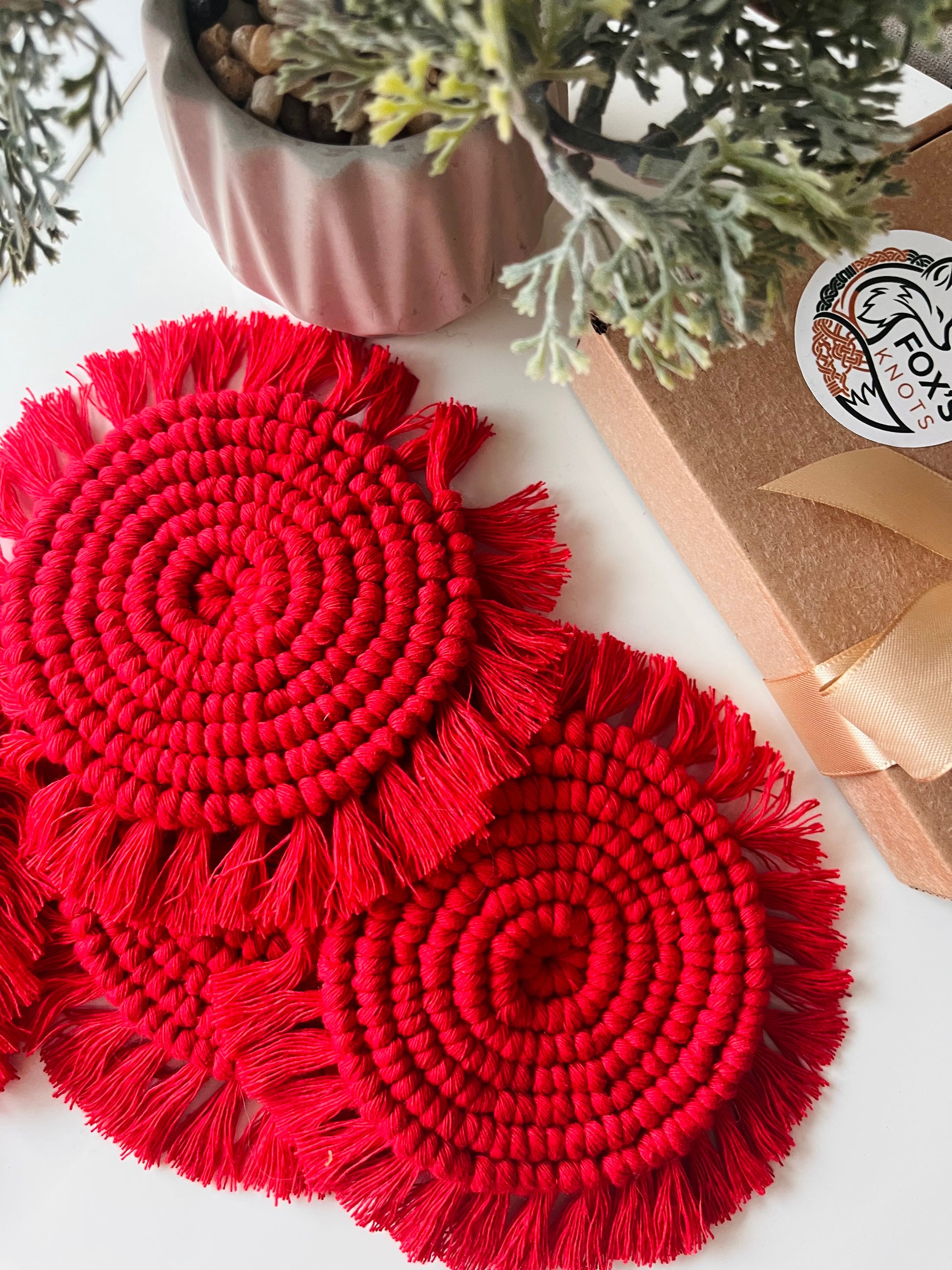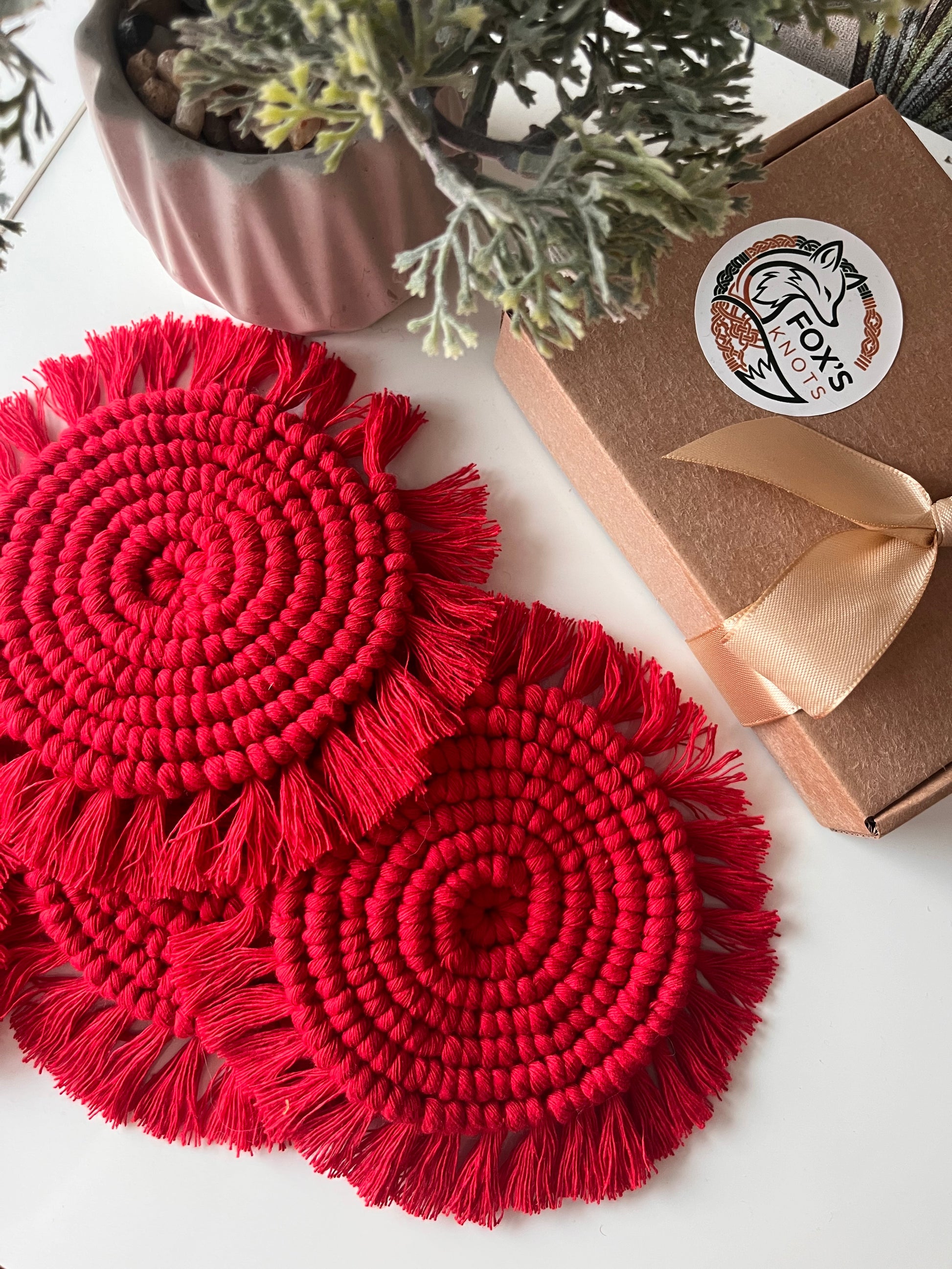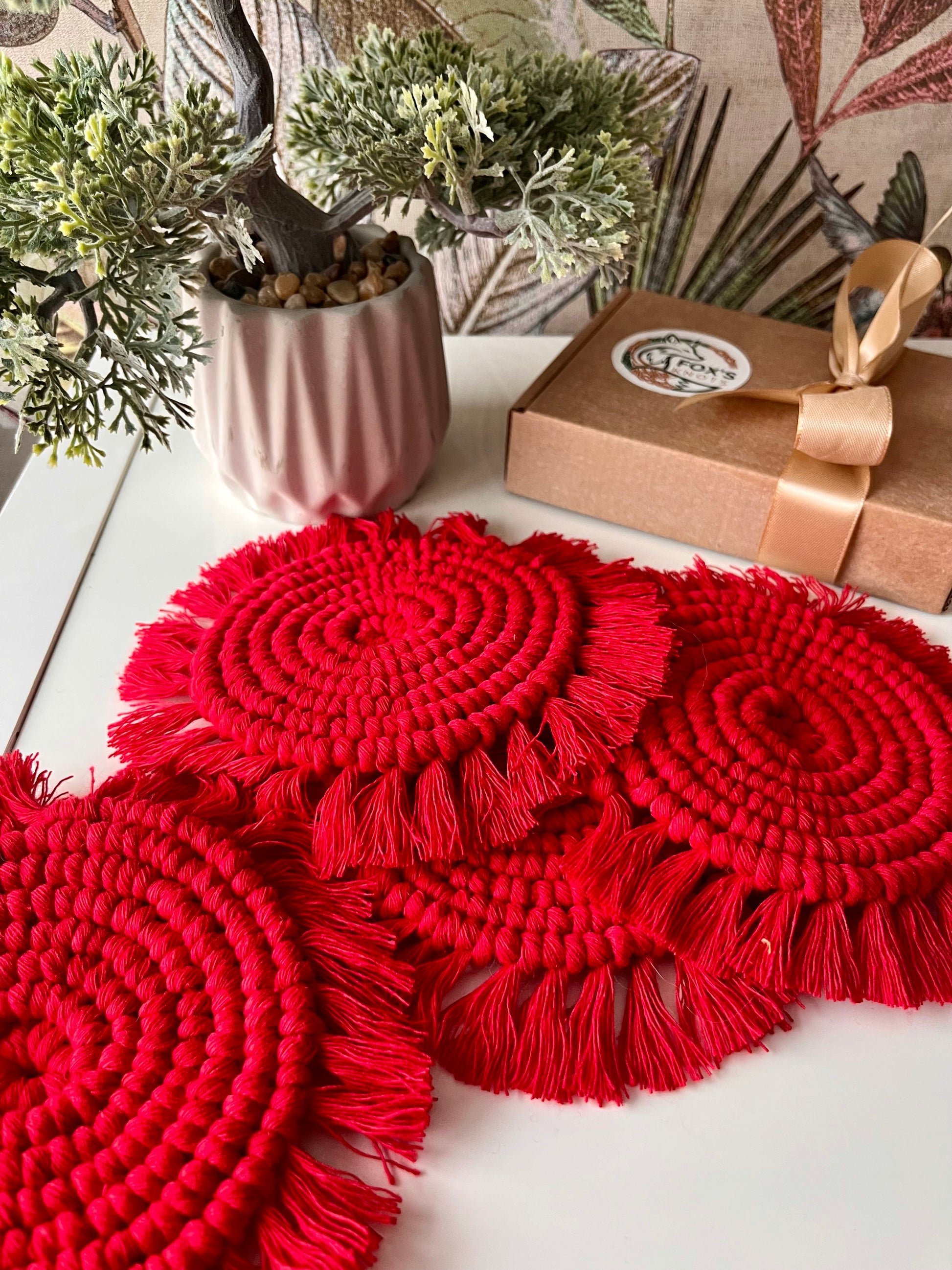Kiekvienas padėkliukas pagamintas kruopščiai, naudojant aukštos kokybės medvilninę virvę, todėl yra tvirtas, ilgaamžis ir malonus liesti. Ryški raudona spalva suteiks interjerui šilumos ir stiliaus – puikiai tinka tiek kasdienai, tiek šventinei stalo dekoracijai.