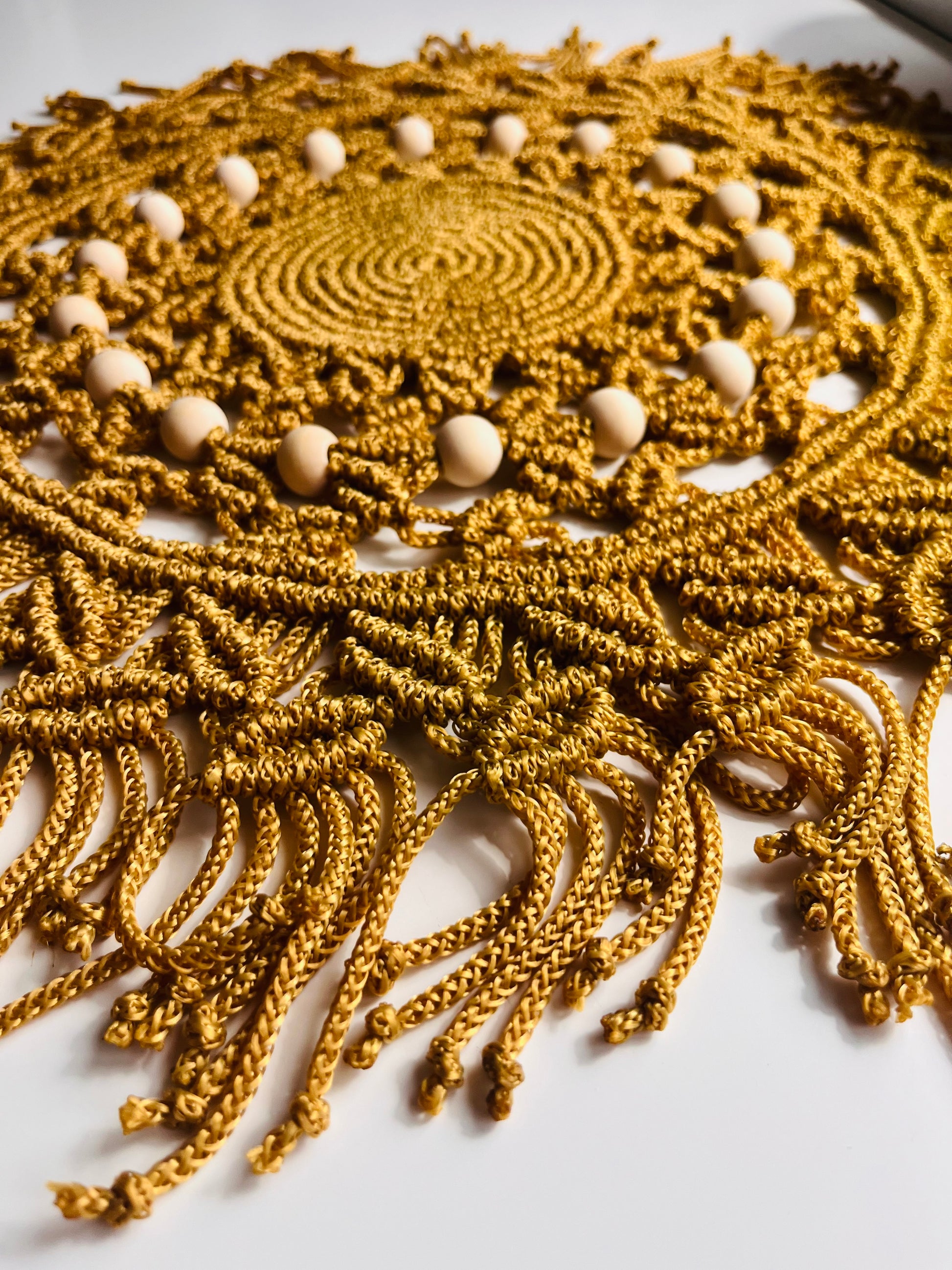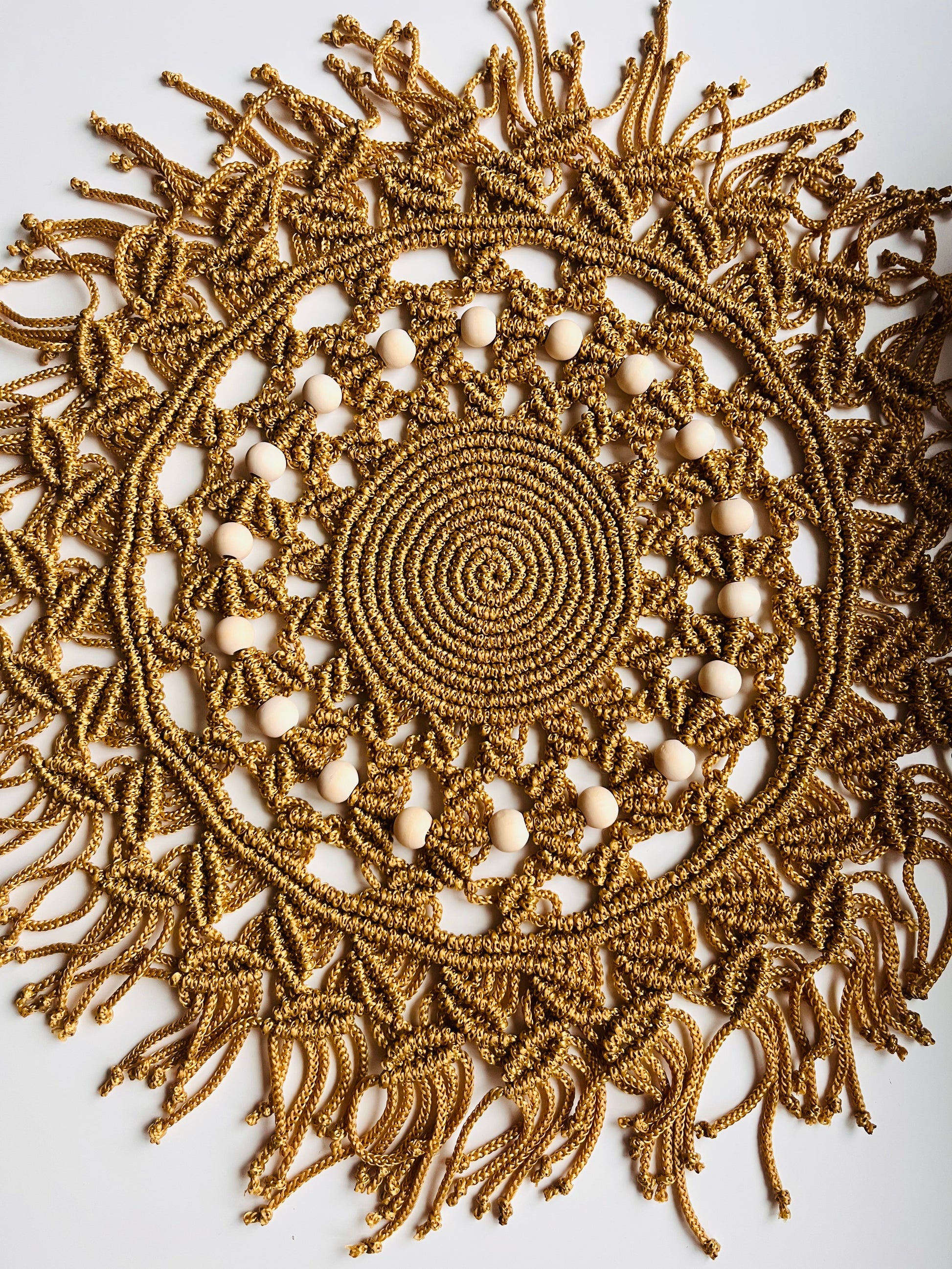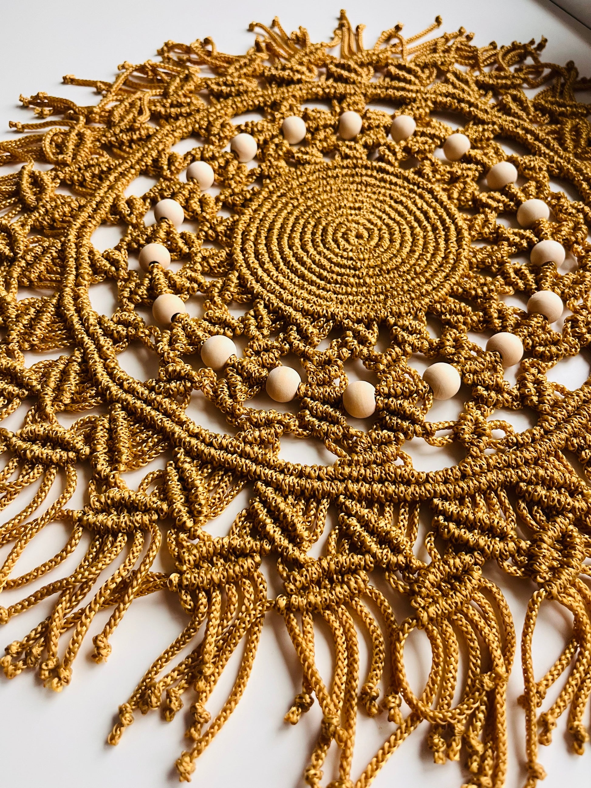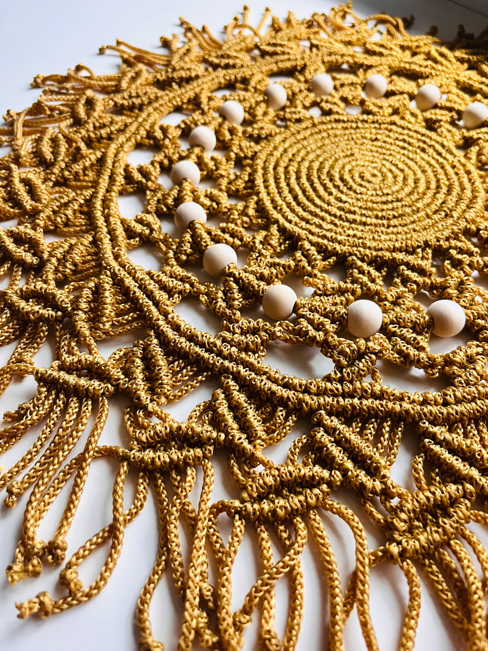 🧡 Rankų darbo makramė stalo padėkliukas „Auksinis Ratas“